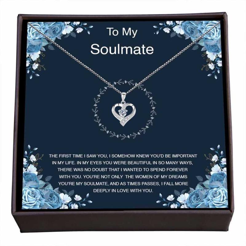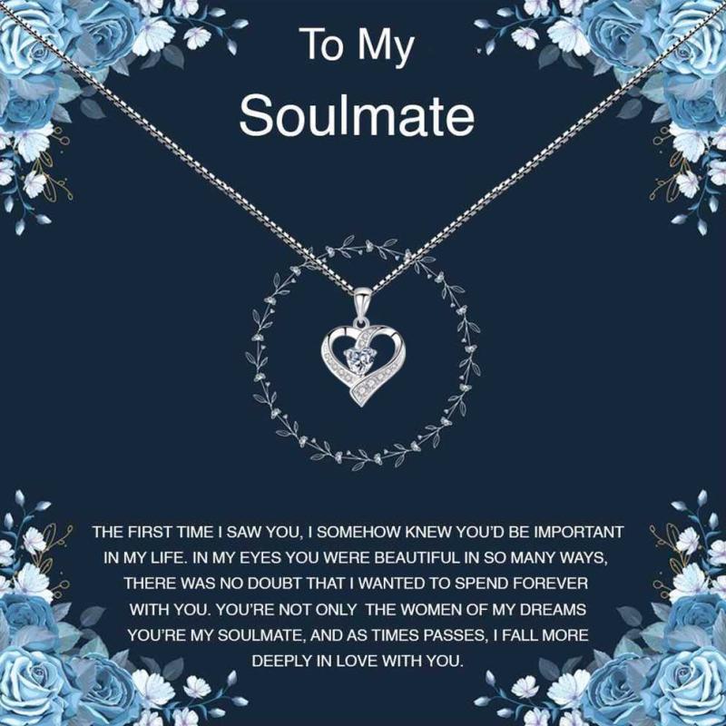 Show your soulmate how much they mean to you with this beautiful silver plated pendant necklace. A perfect personalized gift for that special someone in your life.